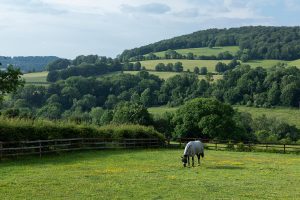 On the Cotswold Way and Wysis Way just outside the front gates.